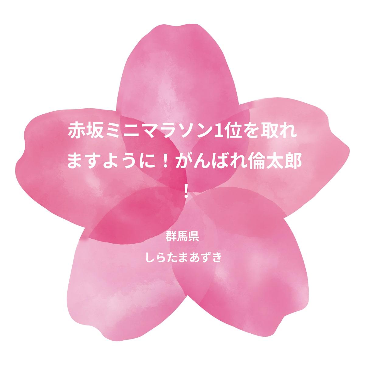 赤坂ミニマラソン1位を取れ ますように! がんばれ倫太郎!